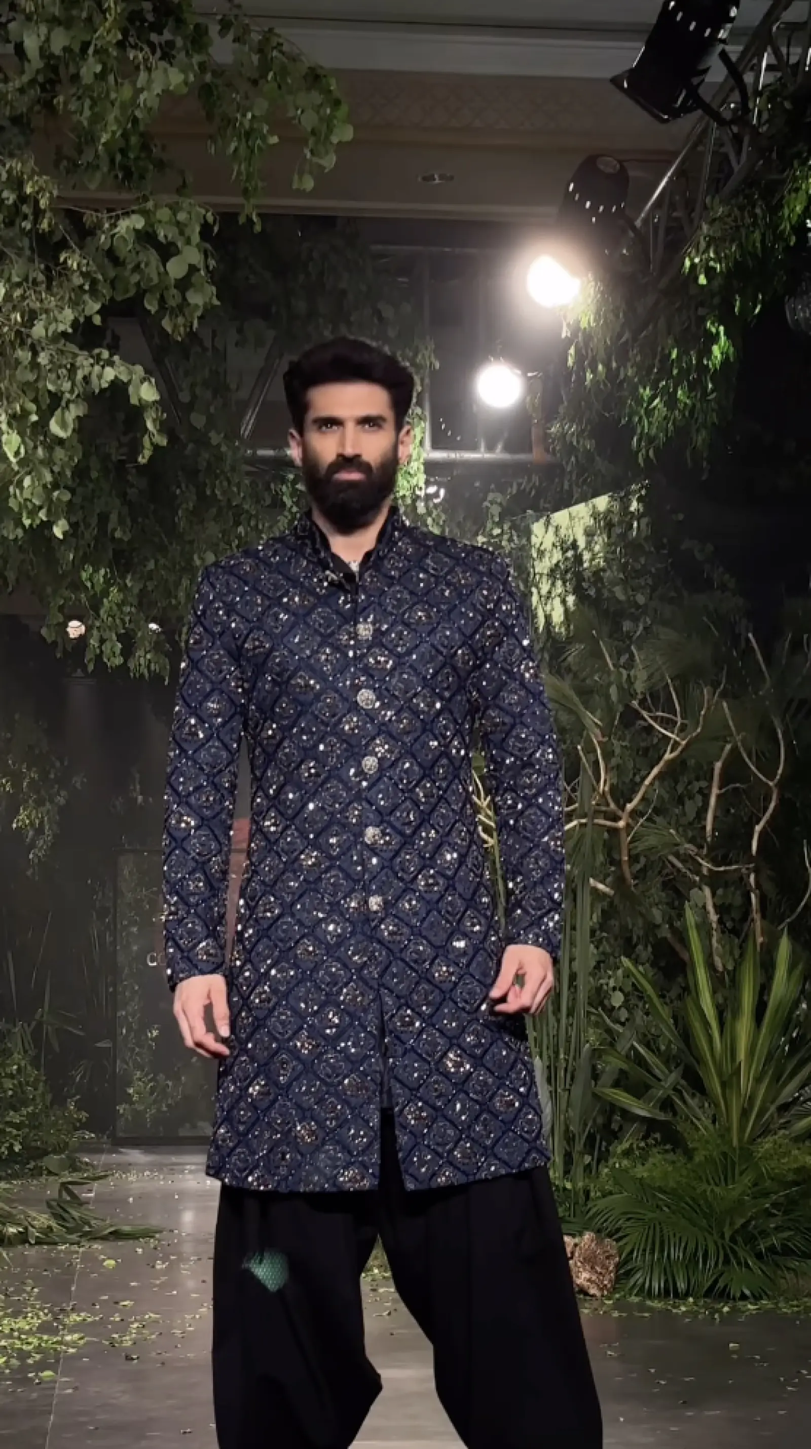 On the third day of the Hyundai India Couture Week, Aditya Roy Kapur became a showstopper for Kunal Rawal, coming on the ramp in his best attire. Dressed in a gorgeous blue sherwani that had cool patola-inspired motifs worked in gunmetal hues and paired with a flowing denim Patiala from the Sehra collection, he got everybody up and paying attention to The Night Manager.